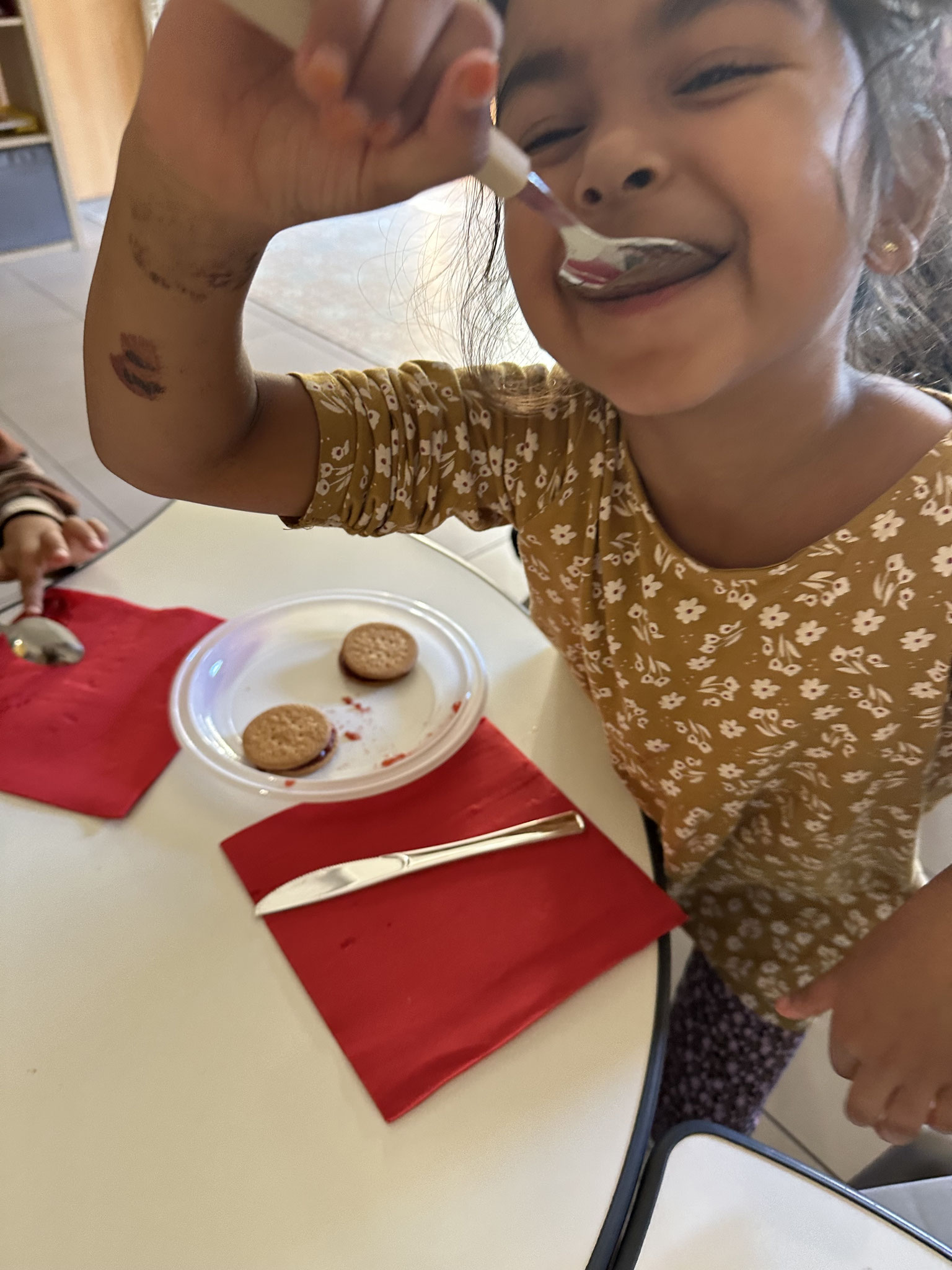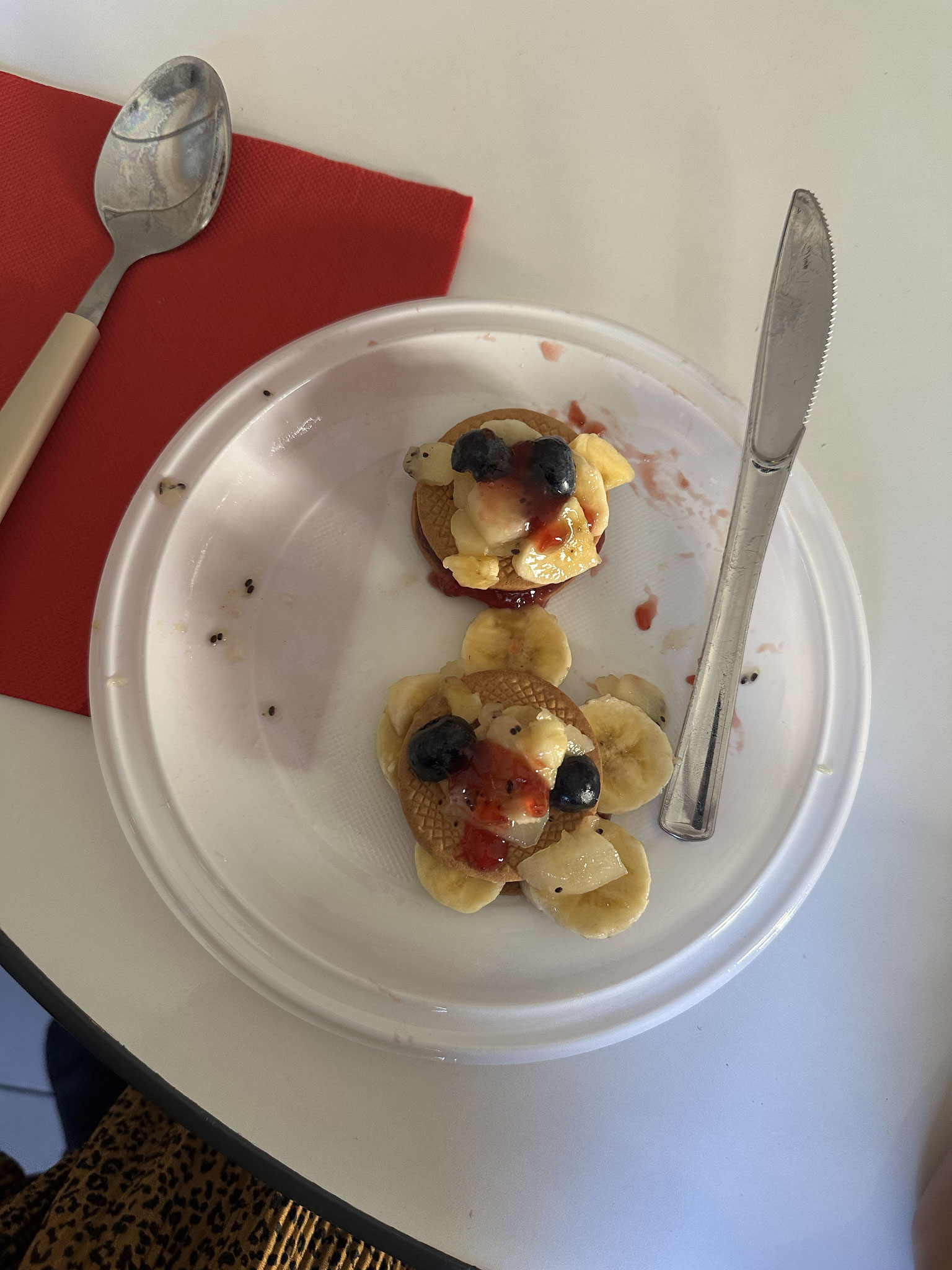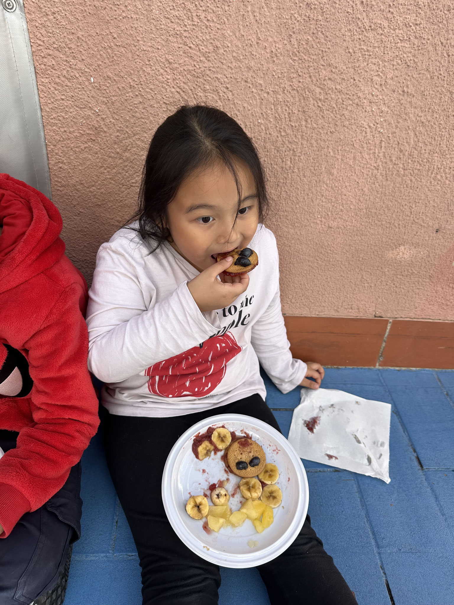 La classe de 1r ha fet un berenar amb melmelada de maduixa. Hem utilitzat quatre galetes, melmelada de maduixa, plàtan, kiwi i nabius.