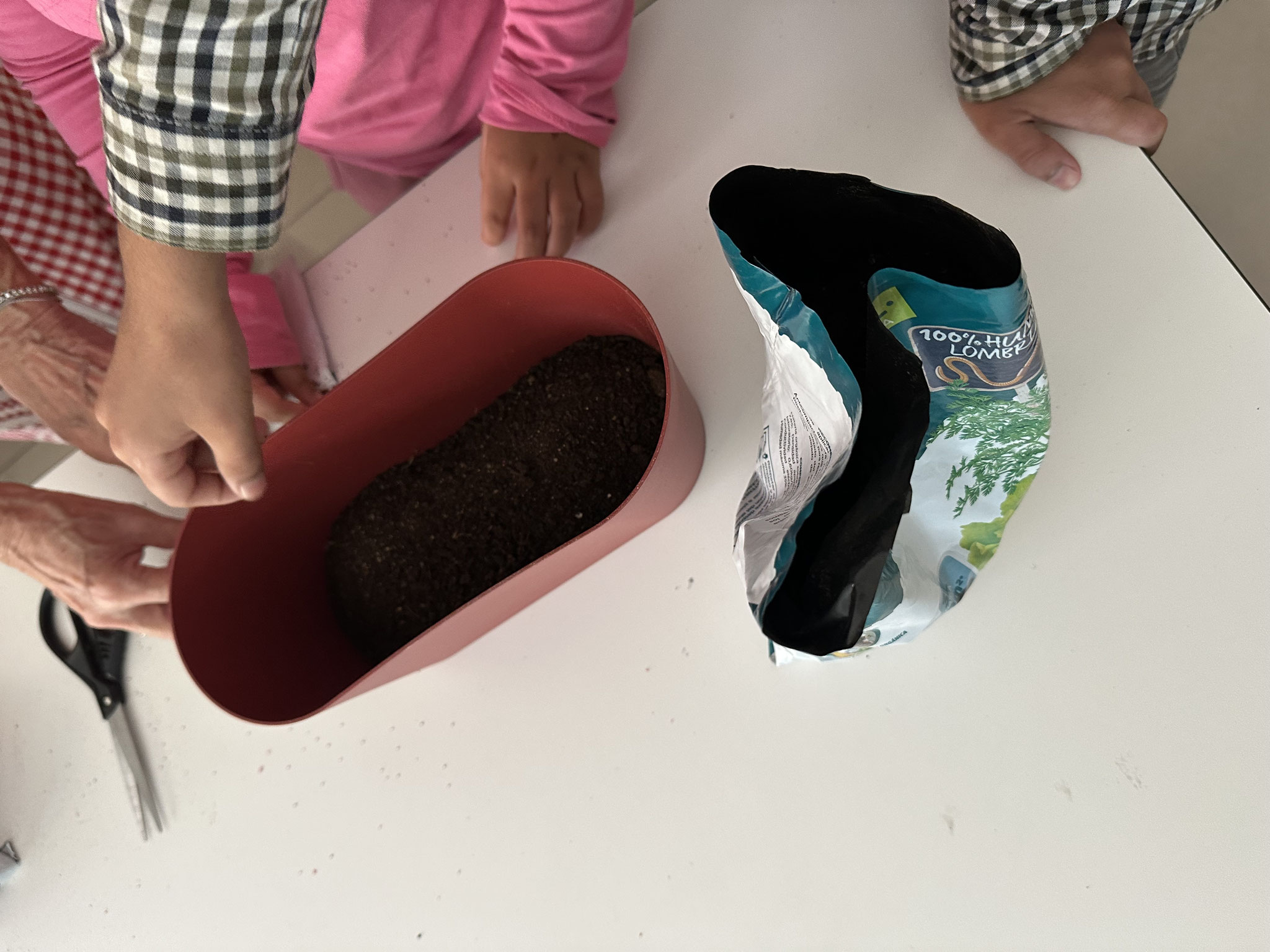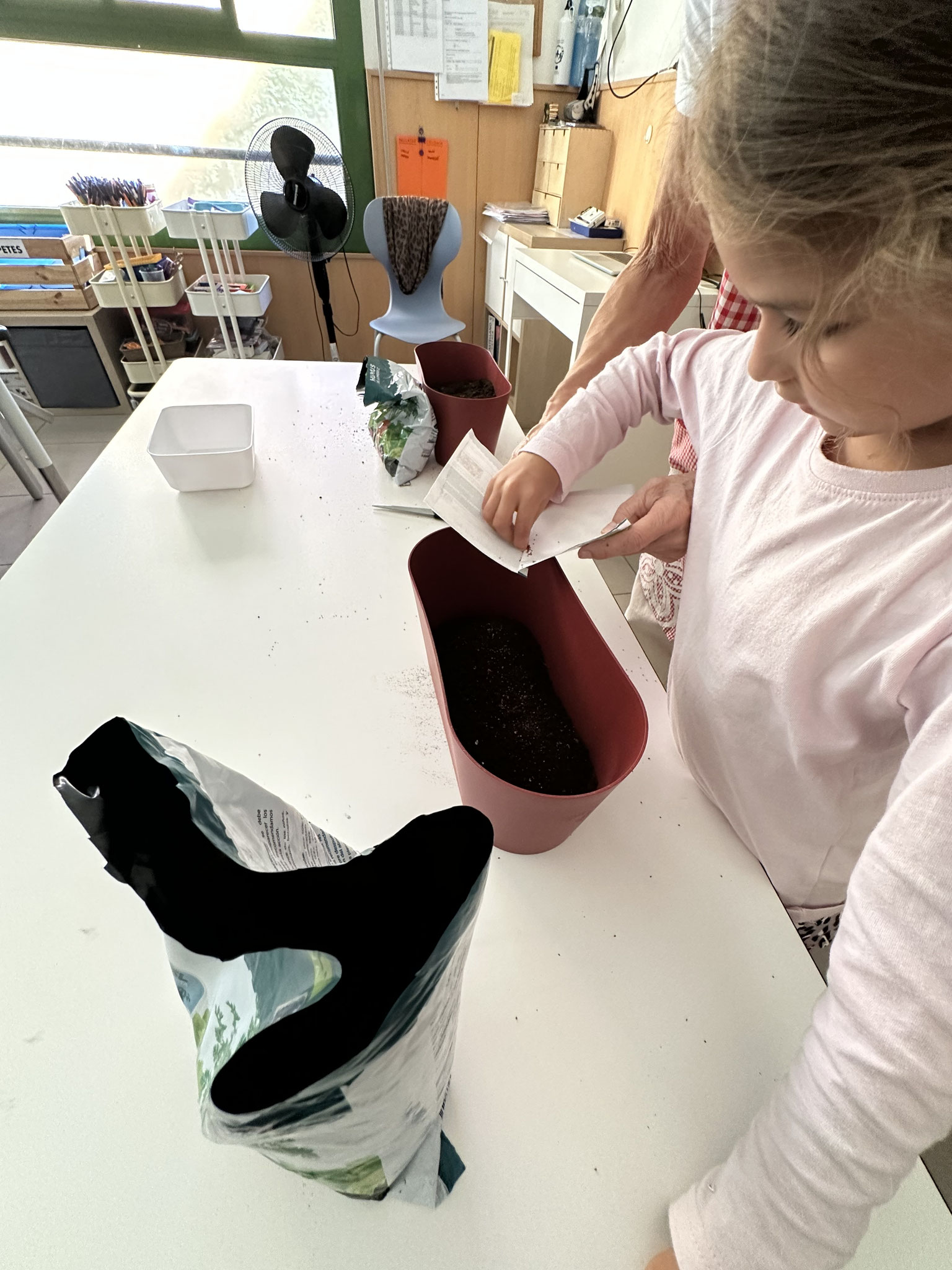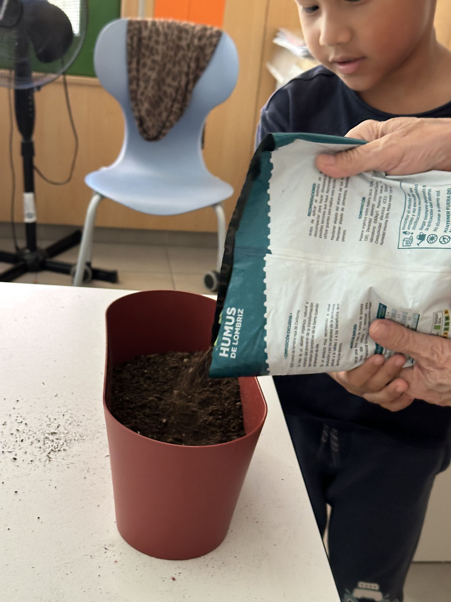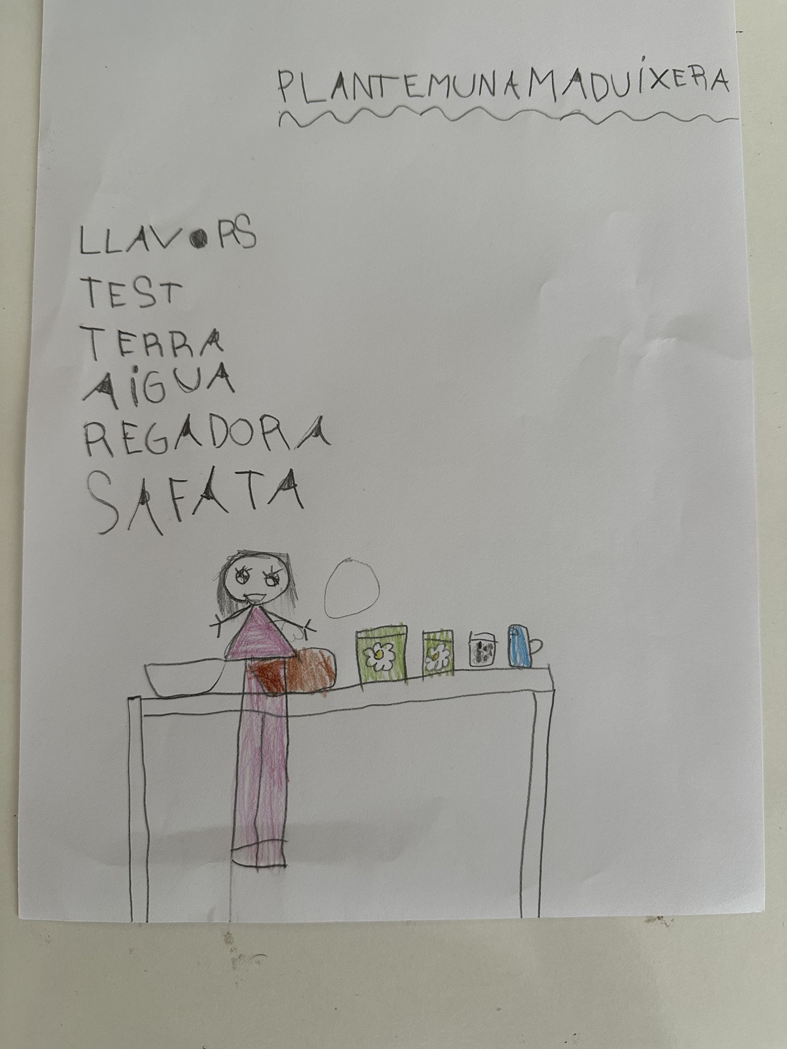 La classe de les maduixes ha plantat una maduixera. Hem utilitzat llavors, dos testos, dues safates, terra, aigua i una regadora.