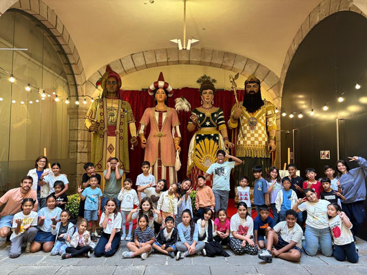 La classe de les maduixes i la classe dels petards han anat a veure els gegants i les bèsties barcelonins acompanyats dels seus padrins de 5è i 6è.