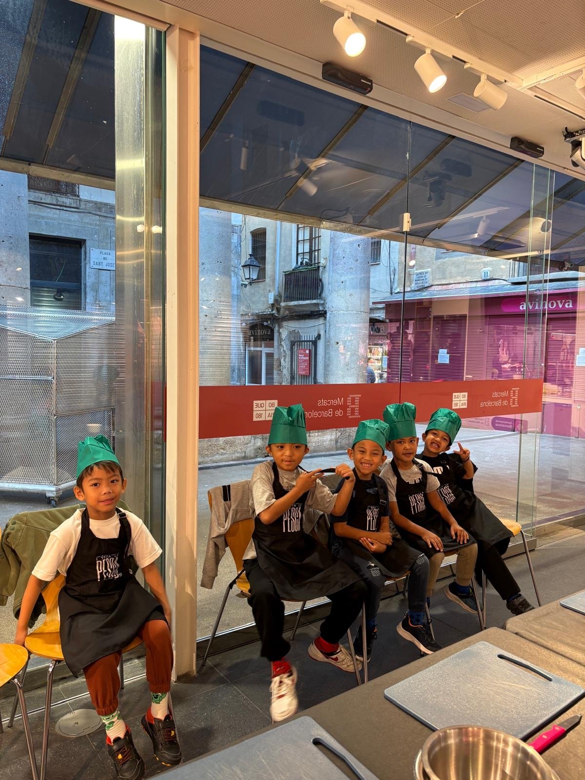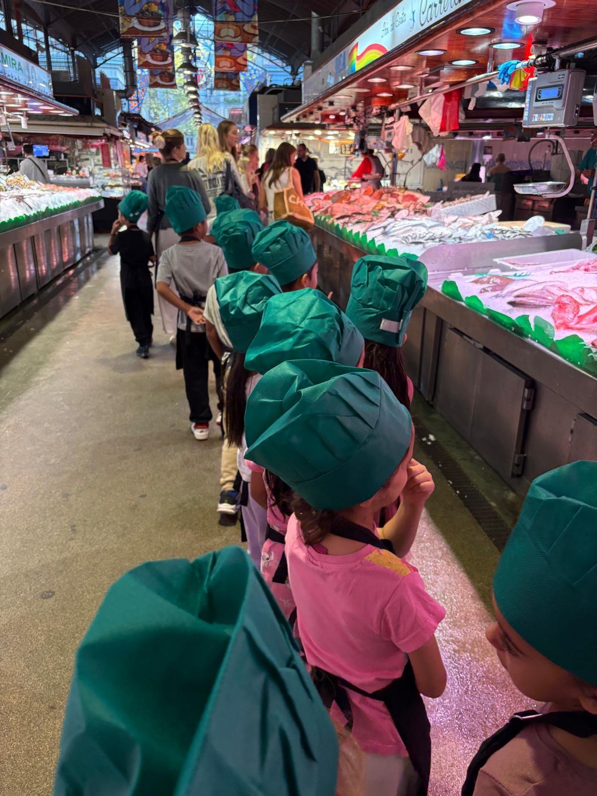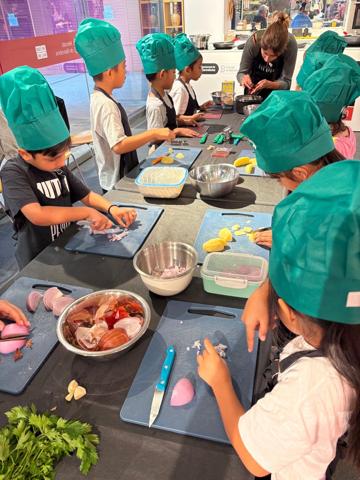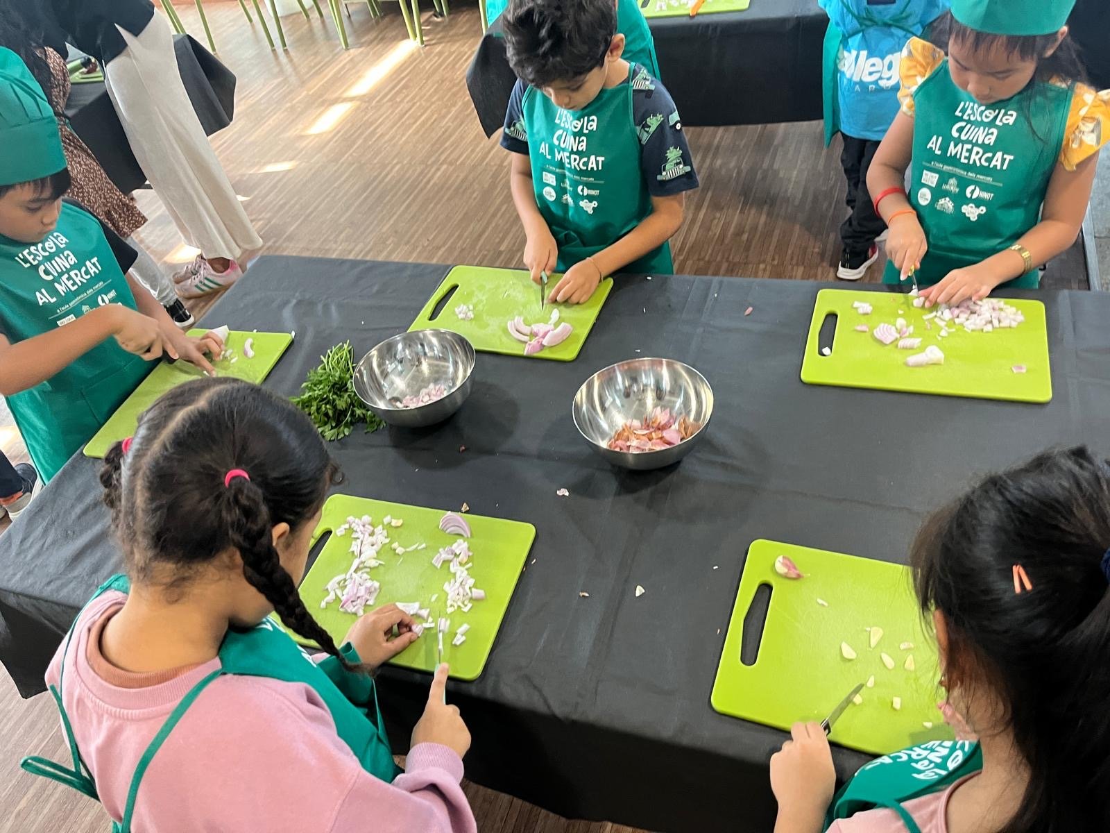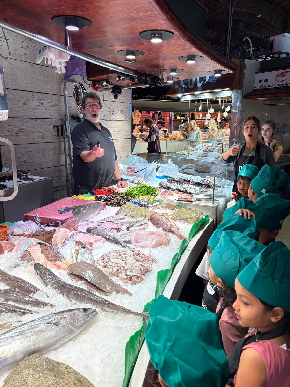 La classe de les maduixes i la classe dels petards han anat a la Boqueria a fer un taller de cuina amb productes de temporada.
