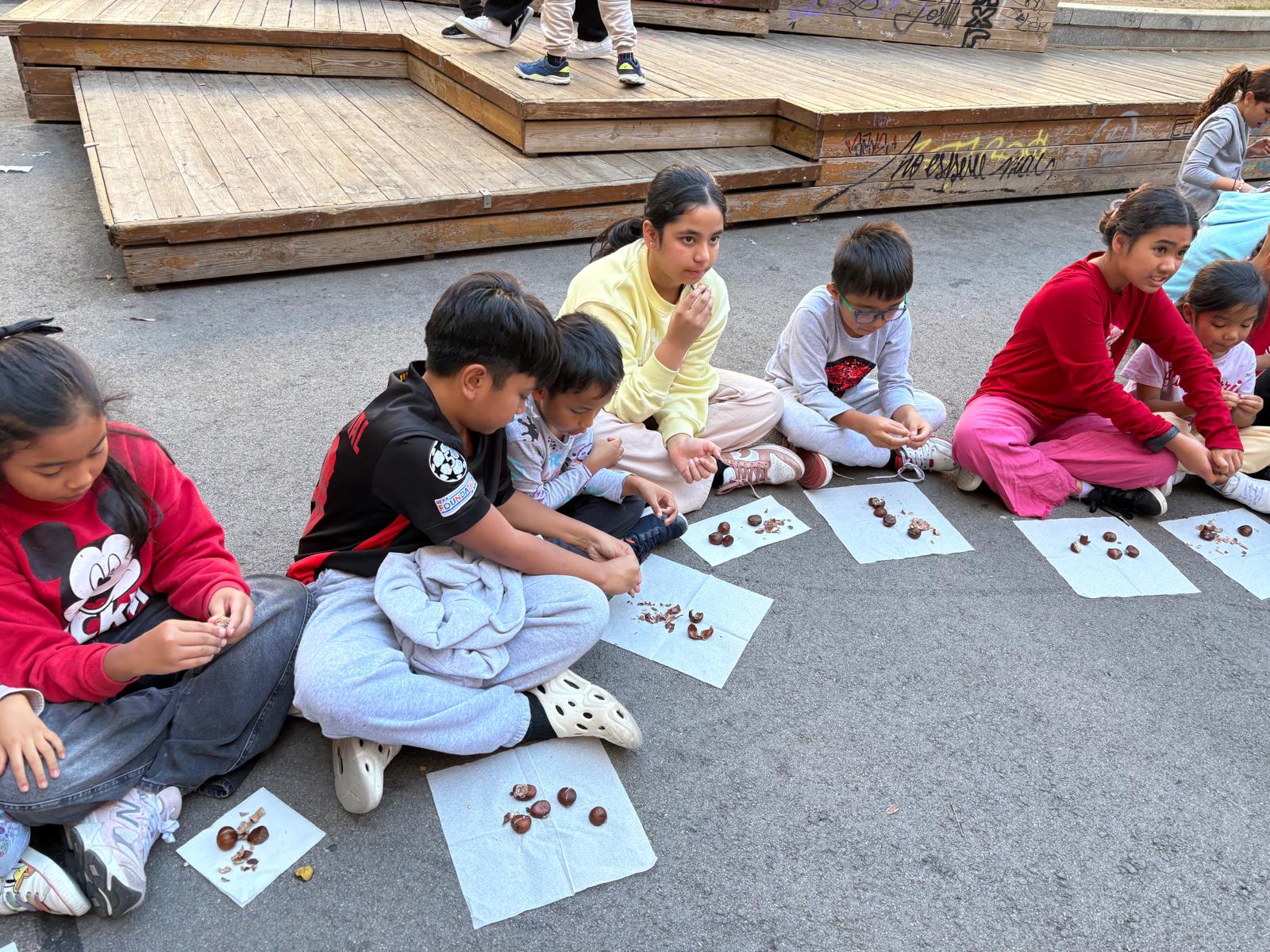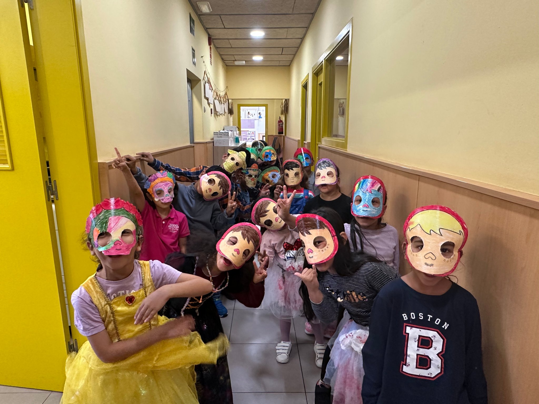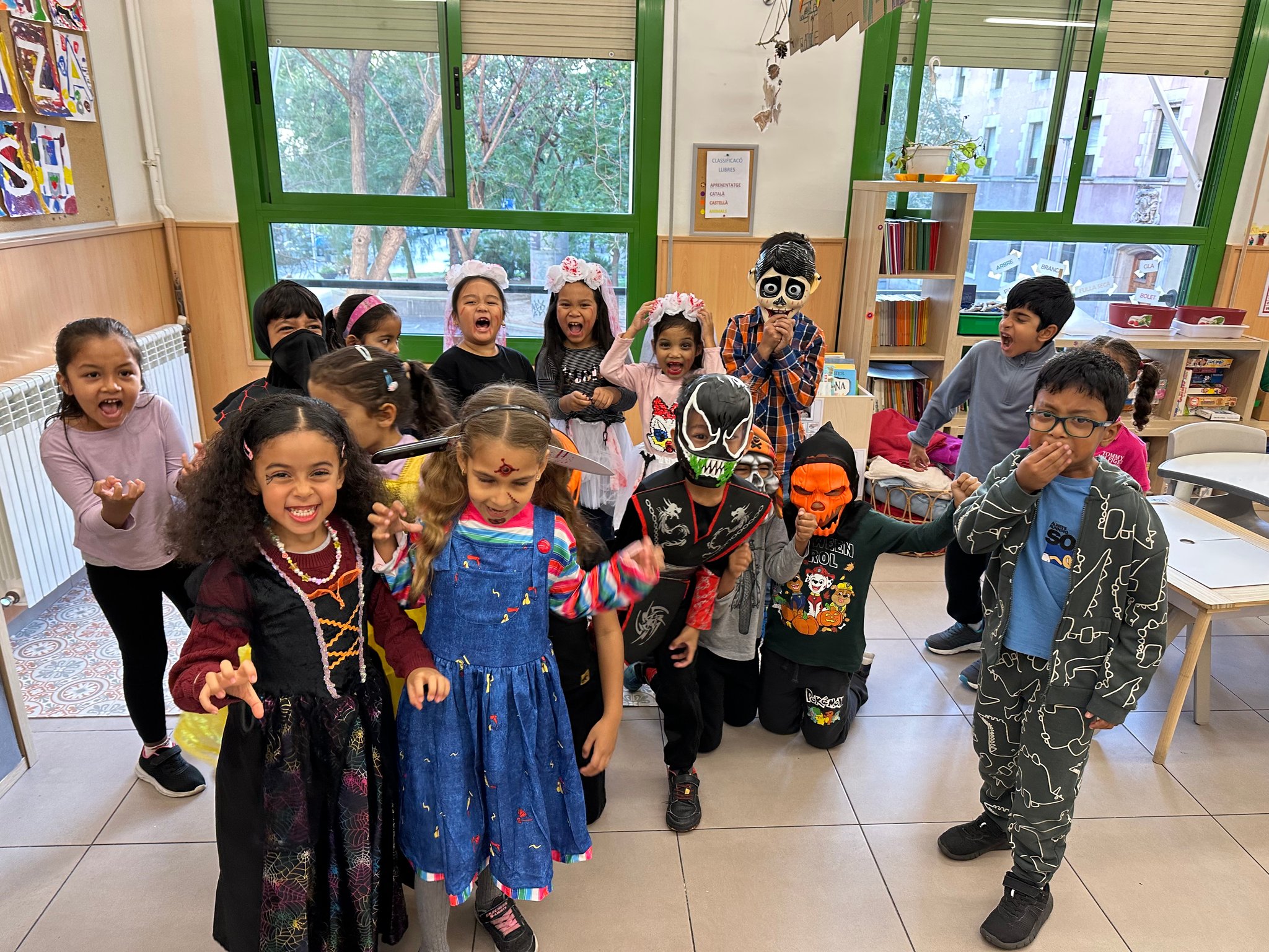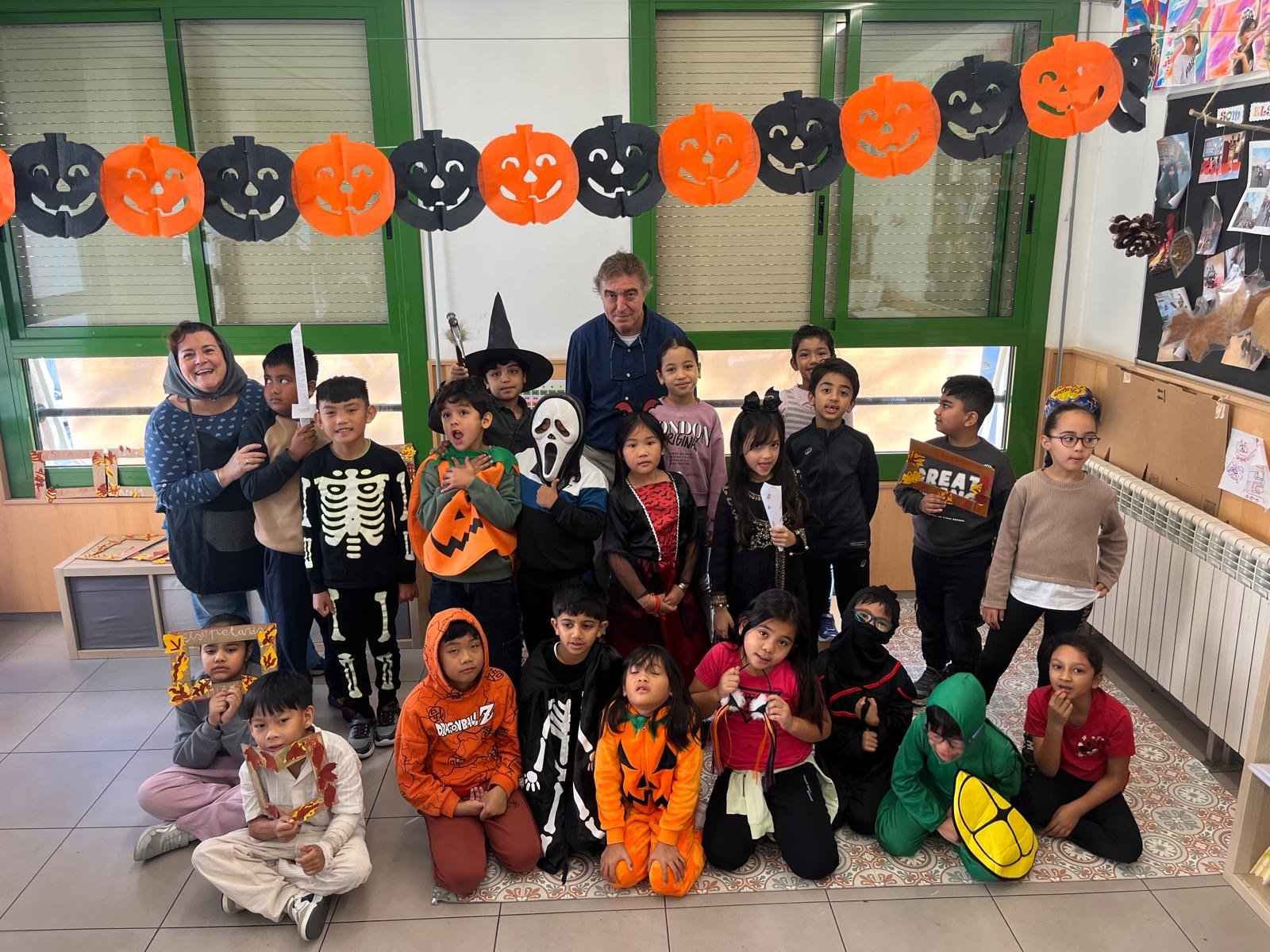 La classe de les maduixes i la classe dels petards celebren la Castaween a l'escola.