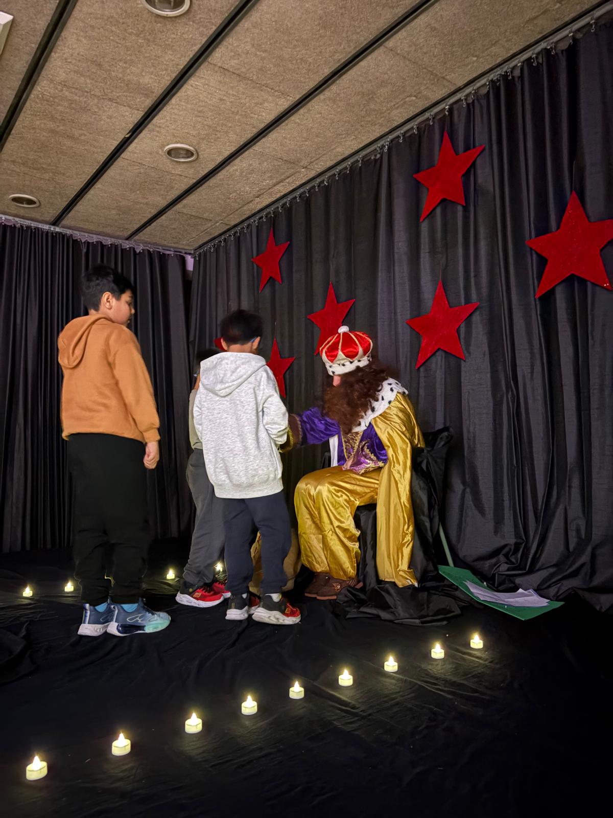 El patge dels Reis Mags ha arribat a l'escola Castella. La classe de les maduixes i la classe dels petards li han donat la seva carta.