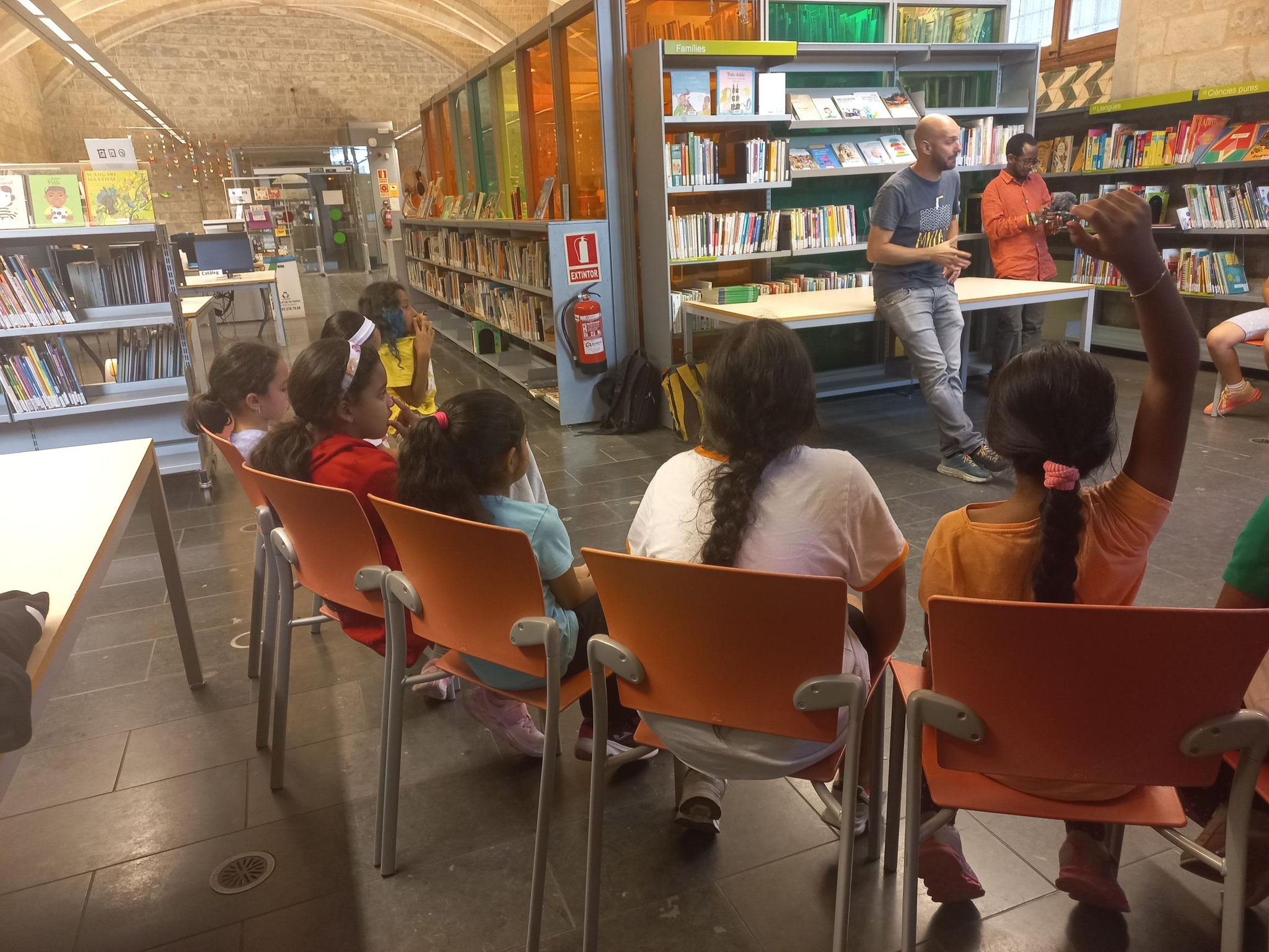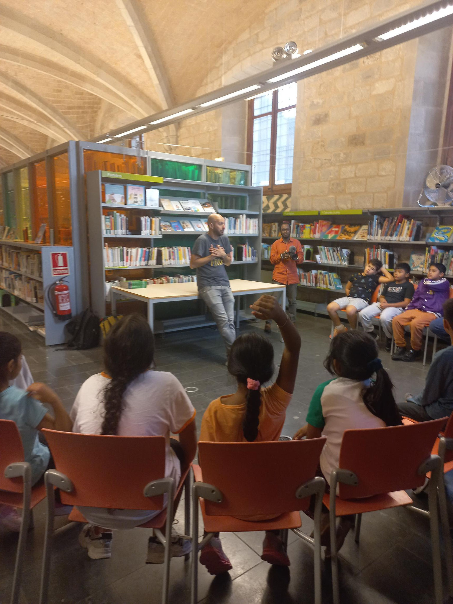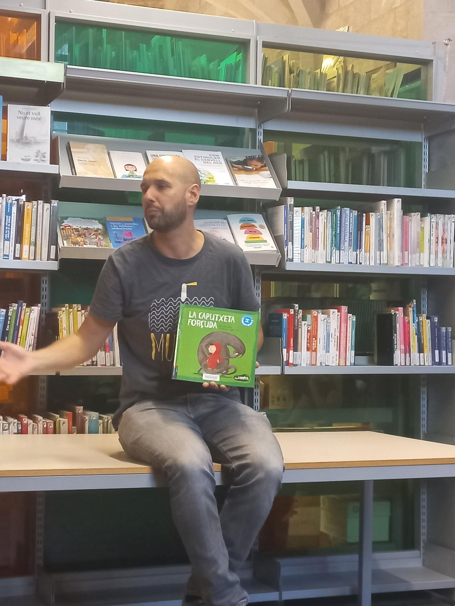 La classe dels artistes han anat a la biblioteca i ens han explicat el llibre La Caputxeta forçuda