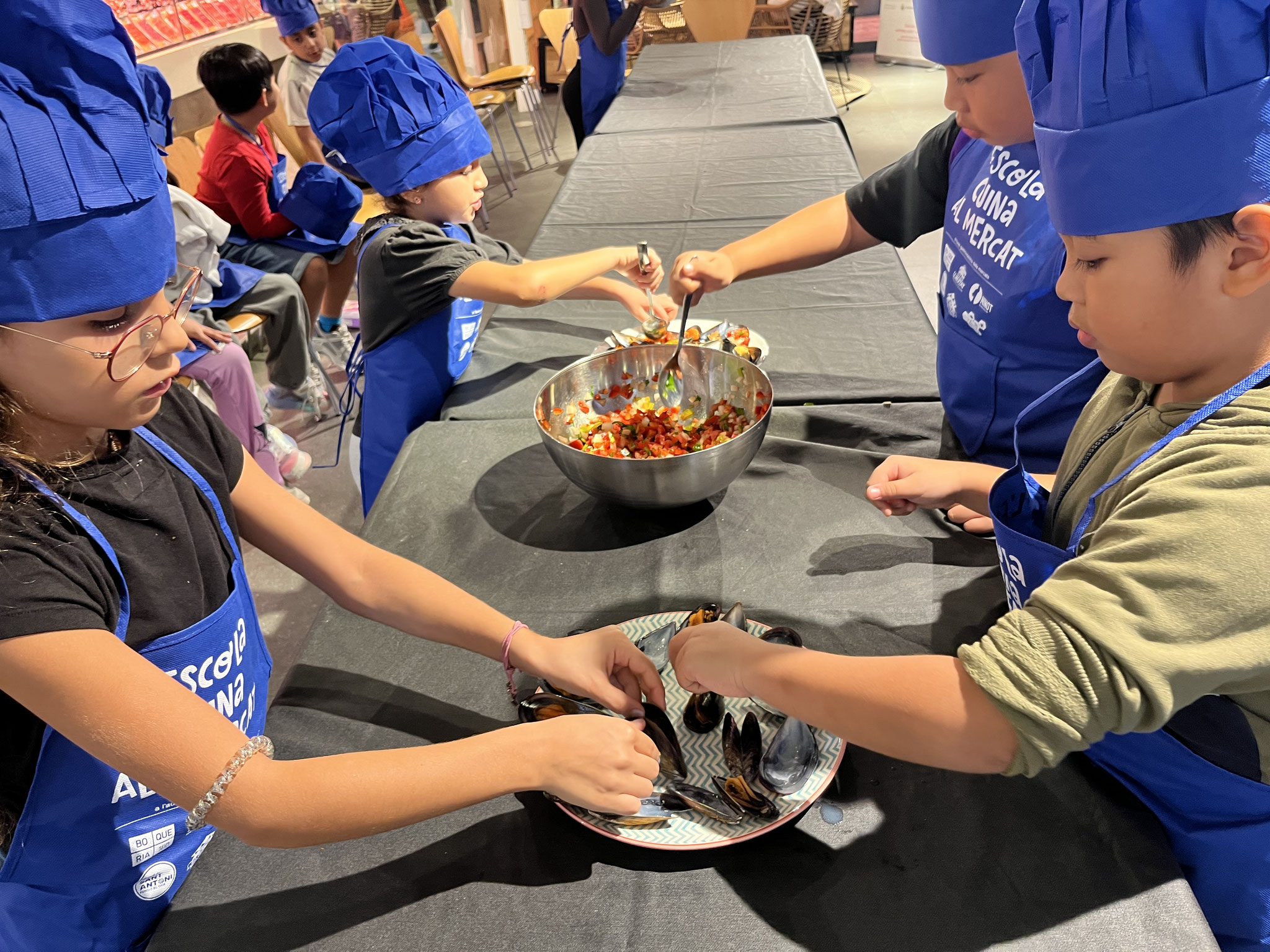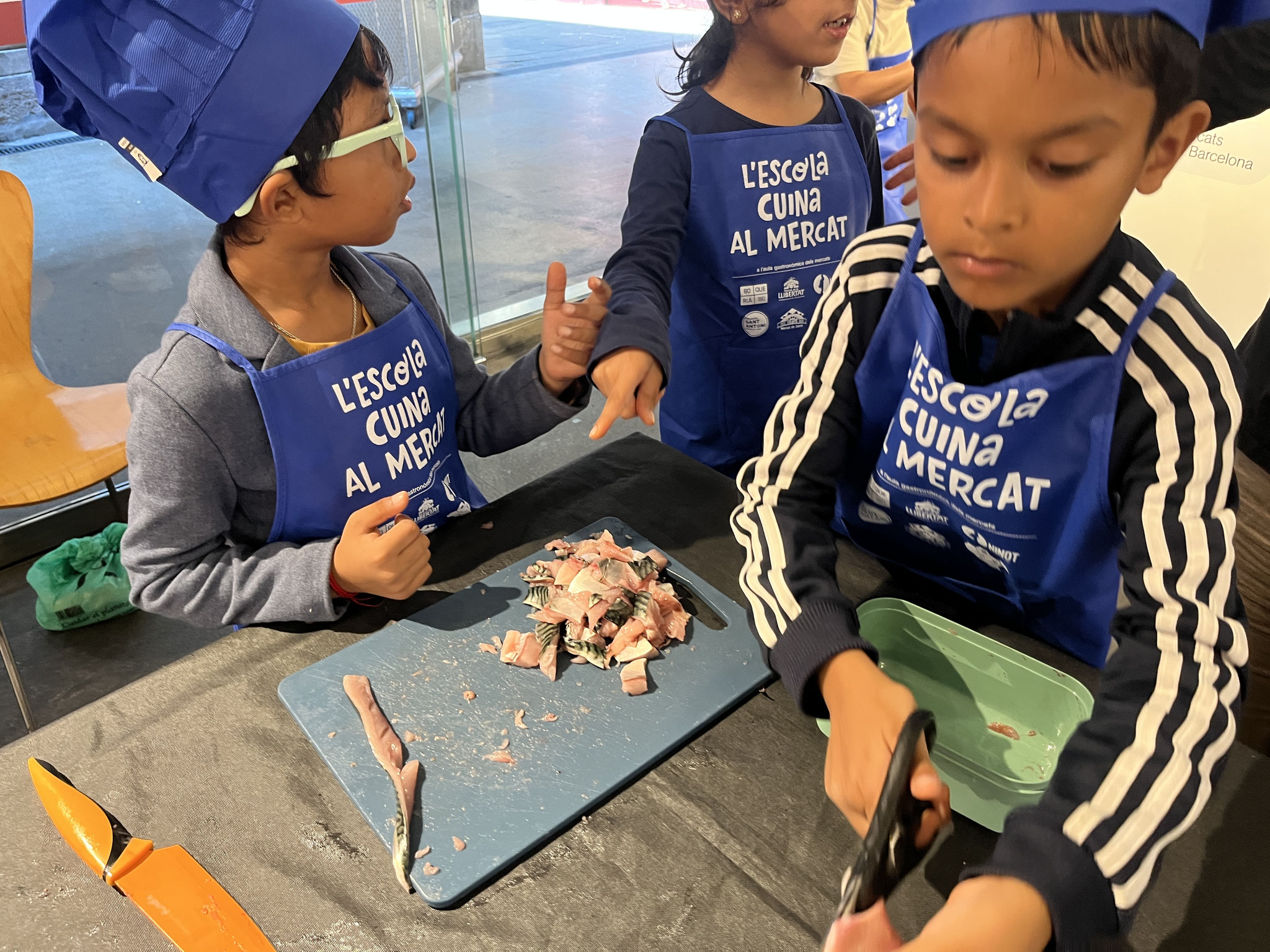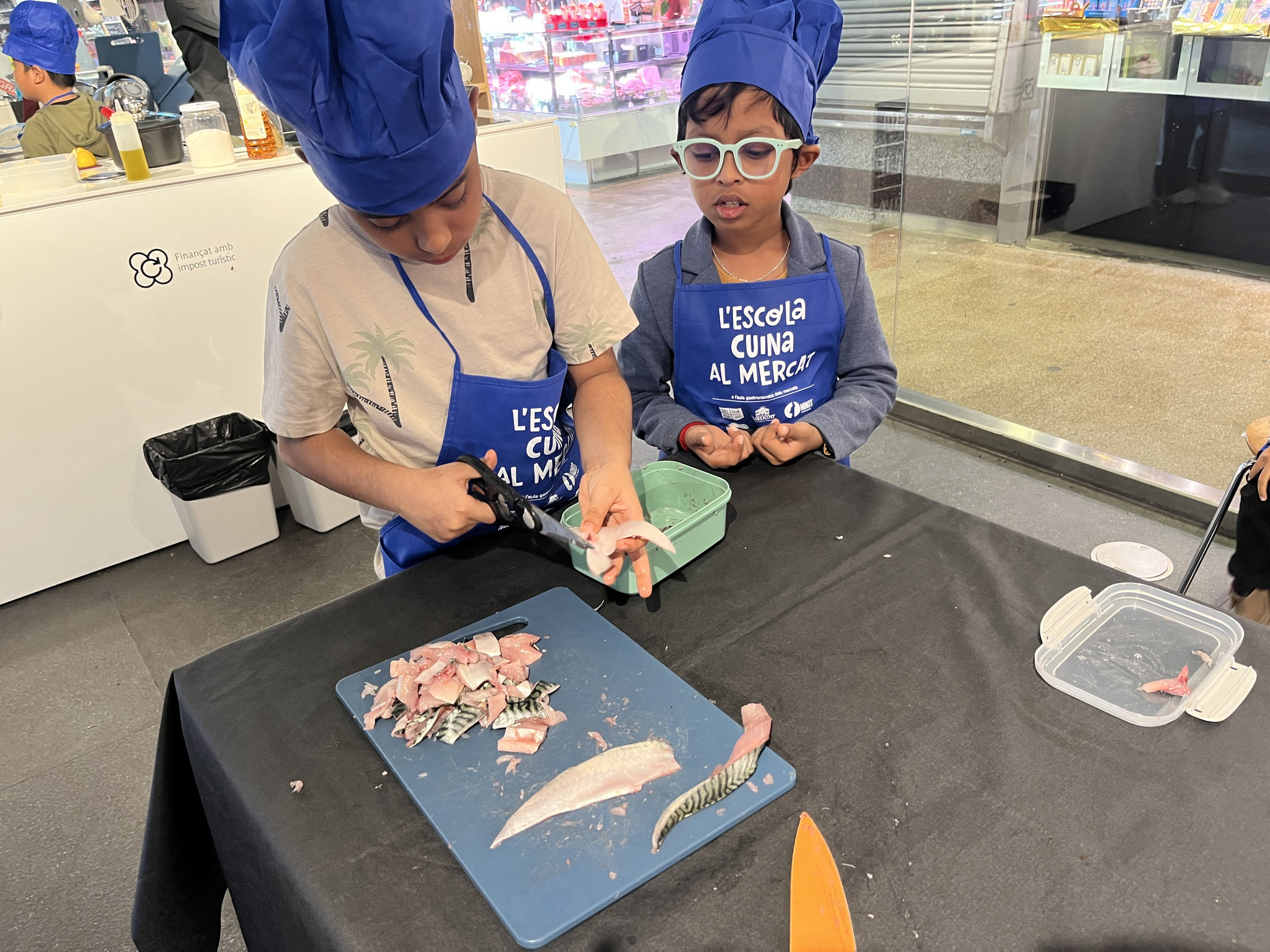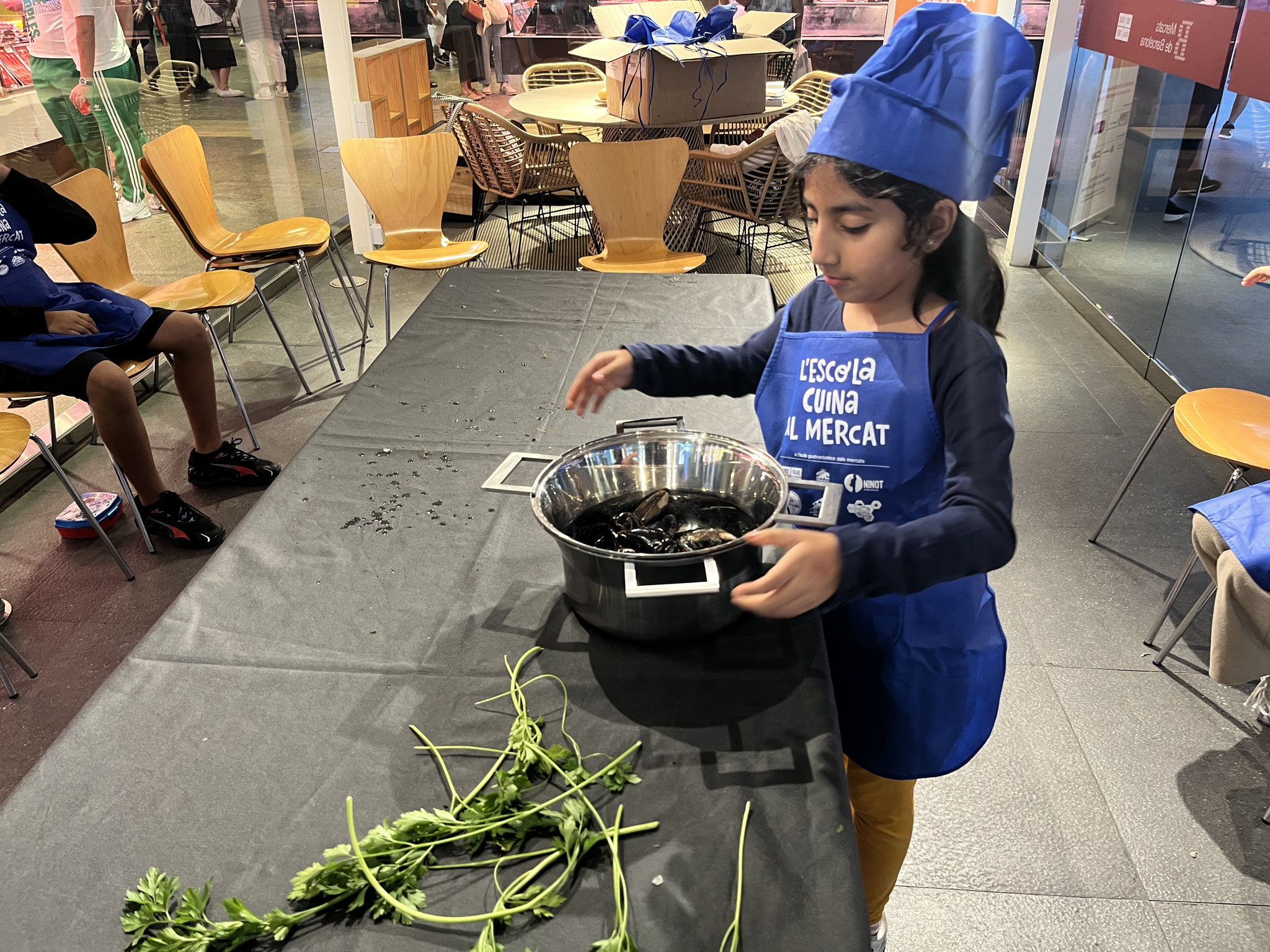 La classe dels Esportistes hem anat al Mercat de la Boqueria i hem après a fer un suquet de peix i musclos amb vinagreta.
