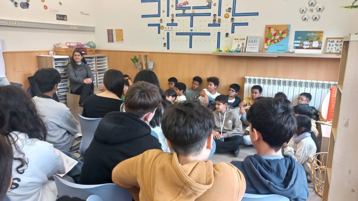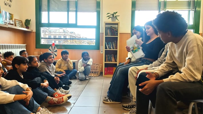 Avui hem rebut la visita dels i les alumnes de l'Institut Jaume Balmes i ens han explicat una sèrie de contes en anglès. Mireu que atents i atentes estaven...