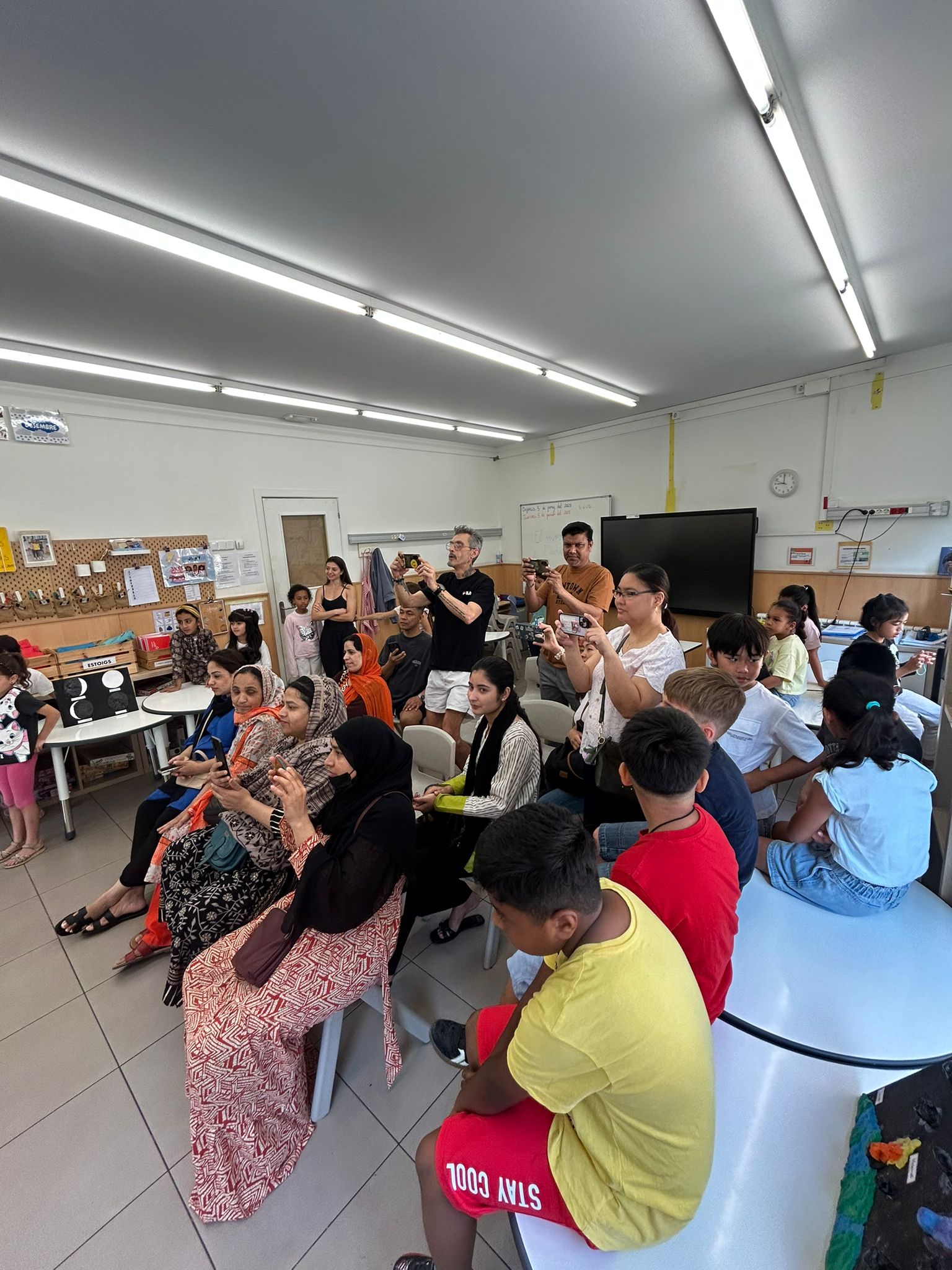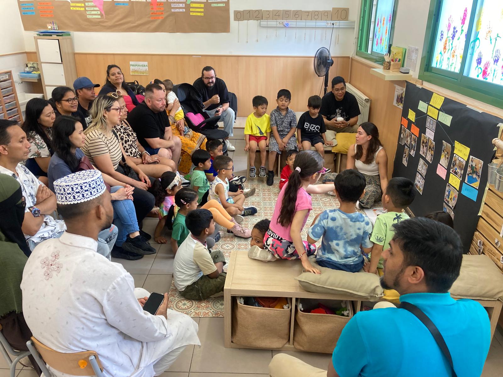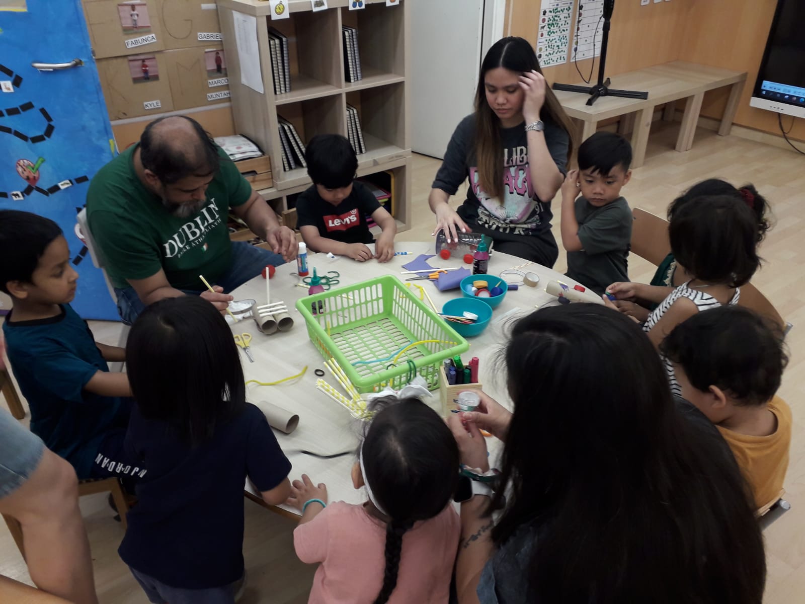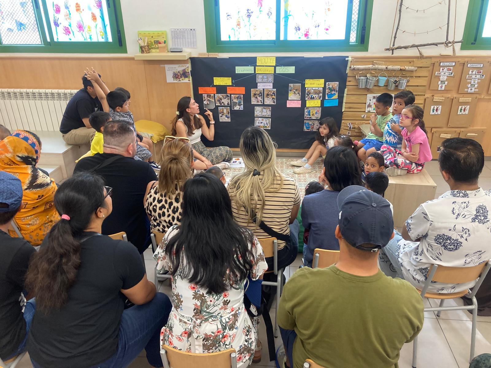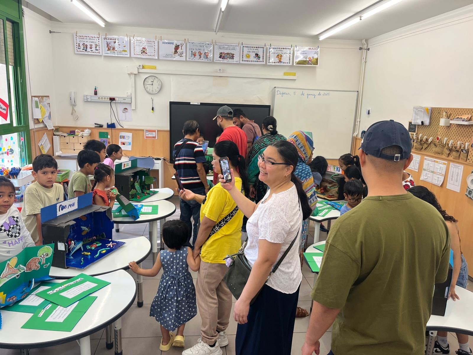 Les famílies del grup van venir a la classe per poder escoltar l'explicació dels infants. Mitjançant un mapa conceptual van anar explicant tot el procés d'aprenentatge i, per acabar, es va visualitzar el vídeo de com s'havia dut a terme la realització del Taller del Robot.